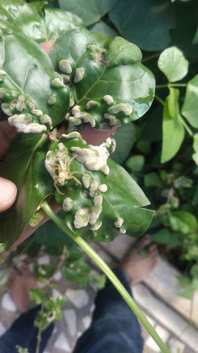 The above disease on Jasmine plant in my garden. Please tell me what disease is this n d cause for this disease. And solution for this.