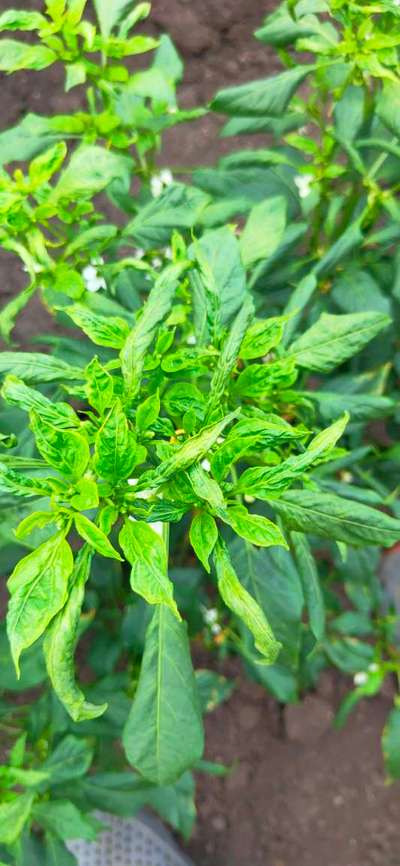 Hi Dileep Chowdary It looks severe curling and I doubt it's Chilli Leaf Curl Virus Please check this link for more details and preventive measures. Other possibility is severe Calcium Deficiency.