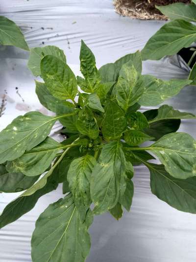 Hi!Thanks for visiting Plantix Community! I agree with Samira Ghouil سميرة غويل . It looks Cucumber Mosaic Virus of Pepper Please check the link to see description of the symptoms and control measures
