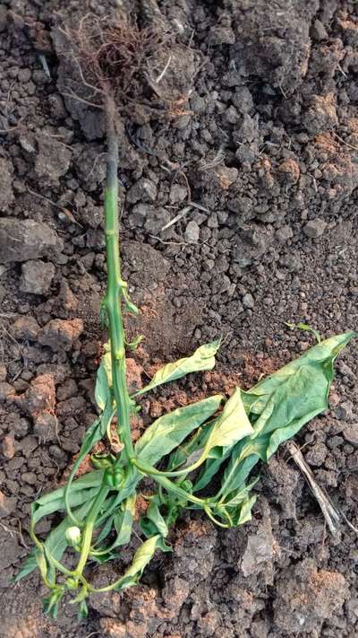 Learn more about PlantixThe stem of chilly plant has dried near root and hence due to it the whole plant has dried