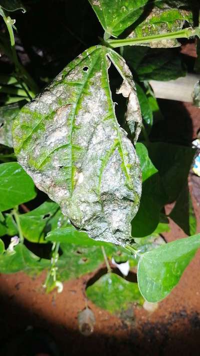 Johani Du Toit It seems like bean leaf and might be associated with Powdery Mildew. Pls ck in plantix library by clicking on green link and let us know if my prediction is reasonable. How many plants show this symptom? And ETL?