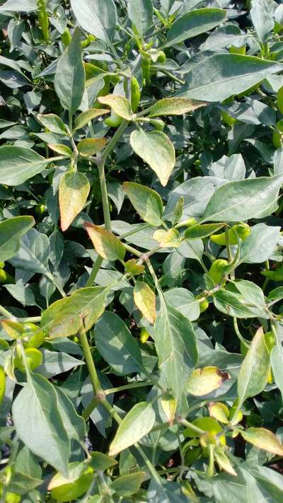 Hi Abdul Rehman . It seems to be initial stage of Powdery Mildew of Pepper and Potassium Deficiency . Click on green links given here for checking symptoms and taking control measures from Plantix library.