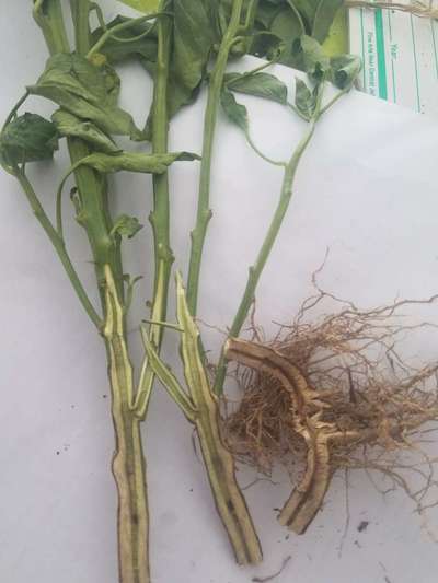 Learn more about PlantixAll the leaves started wilting, on horizental section of the stem.. blockage was found..