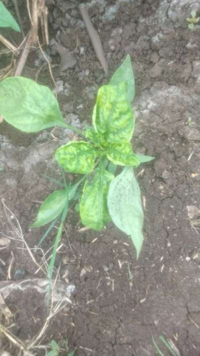 We see this problem with 50 days old chilli . Out of 100, 10 plants are like this. Veins are not yellow. Not finding any flies are any insects backside to leaf. Please advise.