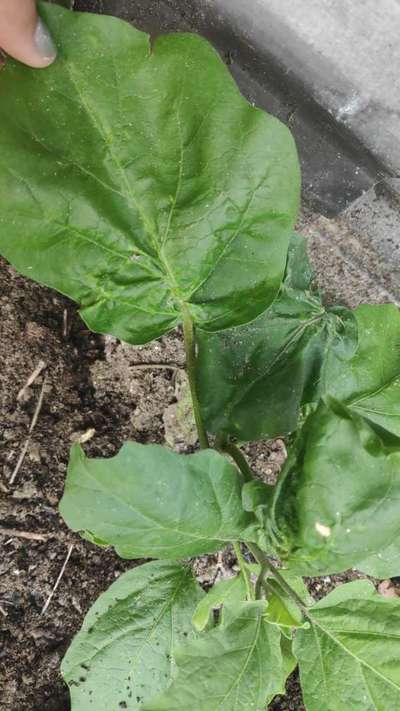 Its a brinjal plant. It was growing normally a few days ago but suddenly I see that the levaes are slowly curling up. Please help me with the problem.