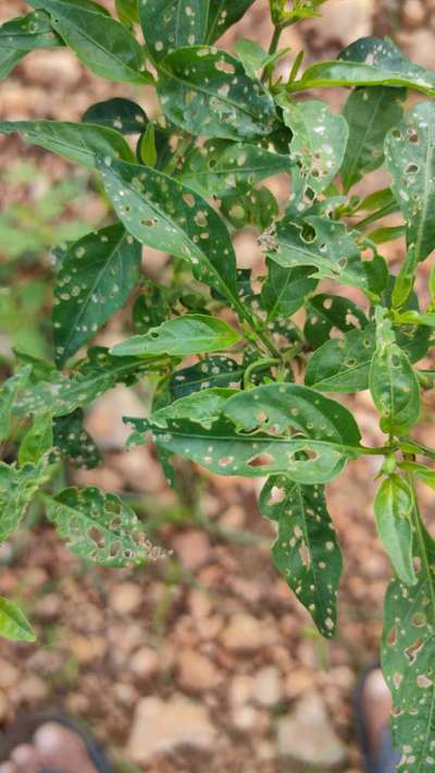 Hi Anil. Your chilli crop is severely effected by Flea Beetles . Click on green link for checking symptoms and taking control measures from Plantix library.