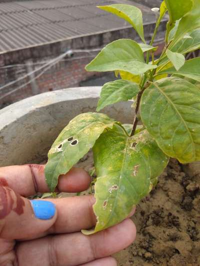 Hi Aparna Singh . Lets check symptoms with Gray Leaf Spot or Chilli Cercospora Leaf Spot and Nitrogen Deficiency by clicking on green links for taking control measures from Plantix library.