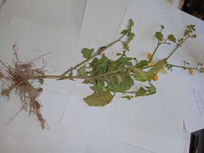 Learn more about Plantix1. There is wilting of fruiting pepper plants. 2. There is subsequent death. NB: no nematode on roots, the land has a gentle slope.