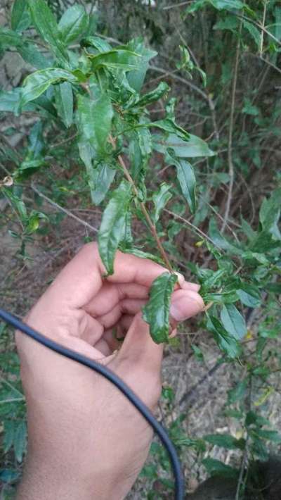 Sir pomegranate me kabhi bhi anar nhi jamta hai r iske leaves bhi mude hue hai isme phool ata hi nhi h aur tree bahut hi hara bara hai but no flower and no fruit