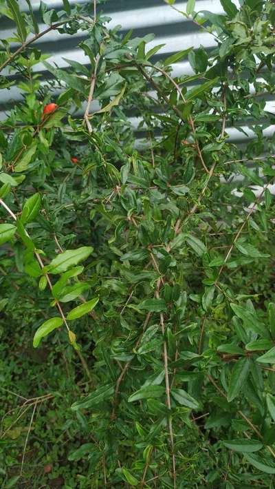 Hi M Sivaprasad . As per your sent image, I think your Pomegranate plant is effected by Spider Mites . Click on green link for checking symptoms and taking control measures. Flower dropping in pomegranate might be due to many reasons as mentioned below: 1. Flower drop in pomegranate might be due to - overwhelming and waterlogging of soil - Avoid it and provide optimum water depends upon soil and climatical conditions 2. Water starvation also leads to flower dropping - Provide optimum watering as said above 3. Poor pollination effect will directly effect on early flower dropping - Keep honey bee boxes to have good pollination, flowering and fruit set 4. Poor nutrition- Provide sufficient quantity of well decomposed FYM or Vermicompost and mix well with soil around plant base 5. Timely prooning - it with give good number of flowers and fruits 6. Give recommend dosage of fertilizers in split dosage depends upon age of the plant, the dosage can be known by your nearest Horticulture department. Apart from this you have to follow all good package of practices pertaining to pomegranate of your area, so that, you will get good growth, flower setting and yield from pomegranate plant.