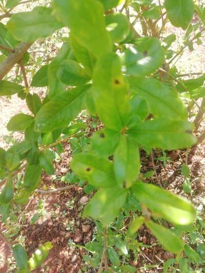 The leaves of the pomegranate tree is wilting and falling off the branches. The leaves turn yellow and have small black spots on the leaves. Most leaves have fallen off the tree and the pomegranates are very small and hardened skin with cuts and the skin is coated with white powder. The pomegranate tree doesn't bear much fruits unlike the beginning when the tree was small. This has been like this for a year and a half.