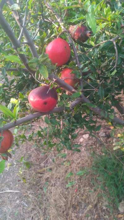 Hi Shiva . Compare symptoms with leaf Pomegranate Fruit Borer and Bacterial Blight of Pomegranate by clicking on green links for checking symptoms and taking control measures from Plantix library.