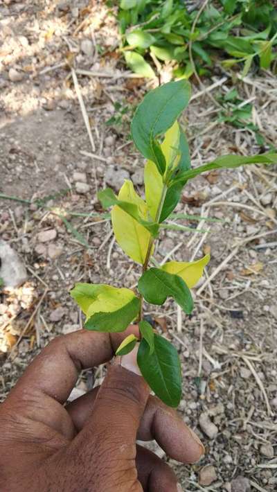 Hi. One possibility is Deficiência de Nitrogênio Please check the links to see description of the symptoms and control measures