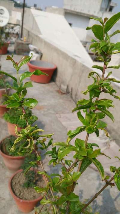 Leafs of pomegranate plants are shrinking bending ad discolouring. What to do...