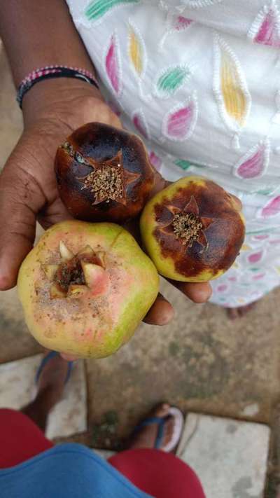 Hi Sriram Bandi It looks like Anthracnose of Pomegranate. Please check this link for more details and preventive measures.