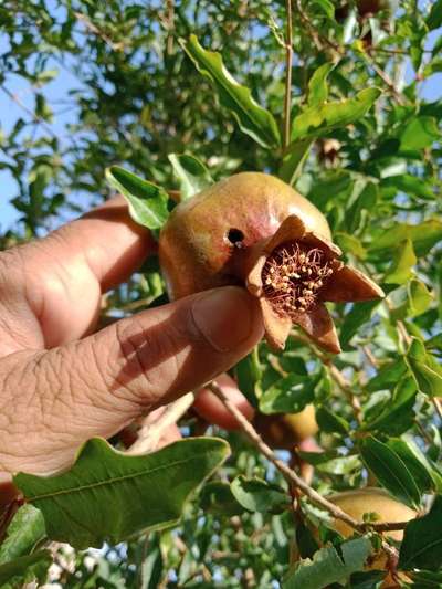 Hi Saeed Ahmed as per your image it seems the attack of Pomegranate Fruit Borer It is the common pest of pomegranate. soultion: Go for the application of lamdacylothrine incase of heavy infestation. It is easily available in market.
