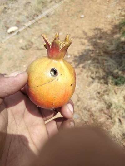 Hi Atheek. As per your sent image, your Pomegranate plant is effected by Pomegranate Fruit Borer. Click on green link for checking symptoms and taking control measures from Plantix library.