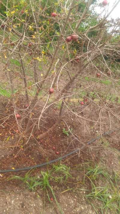 The leaves of the pomegranate tree is wilting and falling off the branches. The leaves turn yellow and have small black spots on the leaves. Most leaves have fallen off the tree and the pomegranates are very small and hardened skin with cuts and the skin is coated with white powder. The pomegranate tree doesn't bear much fruits unlike the beginning when the tree was small. This has been like this for a year and a half.