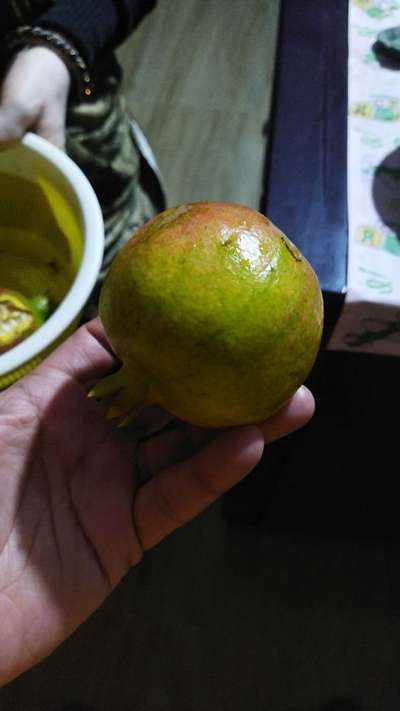 Learn more about PlantixThe pomegranate seed is not growing so the overall fruit is big as you can see in the picture but the seed is small and the fruit is always raw, one cannot eat it as it is always raw