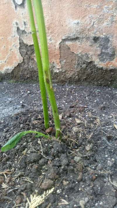 Brown streaks at the base of potato plant stem