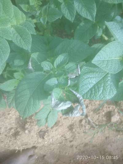 A couple of nights ago, I forgot to cover my potato plant. Since then, the leaves went from limp and soft to harder and discolored like in the pic. The rest of the plant seems ok, just the two spots at the top and bottom, look sad Any help would be great! Thanks!!