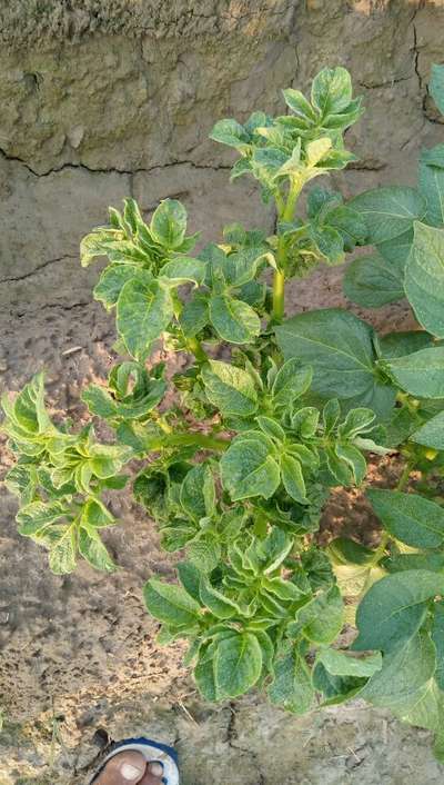 Hi Ashok Sharma It shows symptoms of Potato S Virus Please check this link for more details and preventive measures.