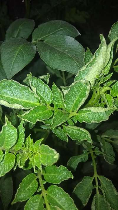 Hi Samim . Sent image is night time picture. Better to send clear and closer day time full plant direct field pictures with your proper query again please. Any way once check symptoms with Potato Leafroll Virus . This disease transmits through vectors like Aphids . Control vectors to control this disease. So, click on green links for checking symptoms and taking control measures from Plantix library.