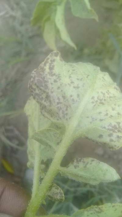 Potato lower leaf are affected , not in all but present in few plants