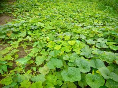 Yellowing of pumpkin leaves