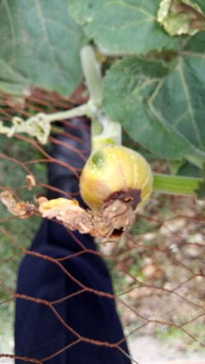 Learn more about PlantixThe small pumpkin fruits start drying off at the base of the flower eventually leading to death of whole fruit. What could be the problem?