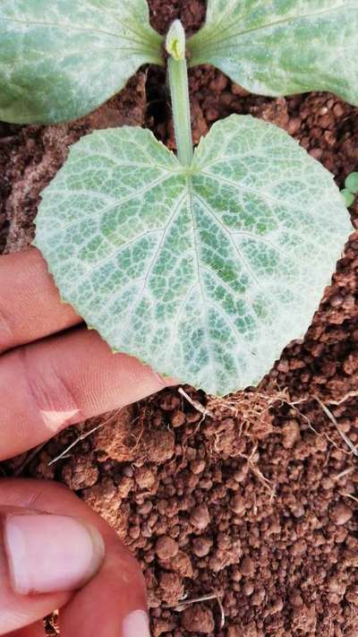 Hi Ranjeet Yadav ! Can't say anything at this stage. As I can not see puckering or vein yellowing to confirm cicurbit vein clearing virus at this stage. You can do the following 1. Please check the variety and its characters from the seed source. Some varieties of pumpkin especially Zucchini shows such leaf symptoms which is normal For your reference I am uploading a pic also 2. Vein clearing may be due to Iron Deficiency. Please check from the link. 3. Also check for insects at the lower side of leaf. 4. Provide the plant Vermicompost 200 g immediately and keep a close watch for atleast a week. All the best. Thanks for visiting plantix community