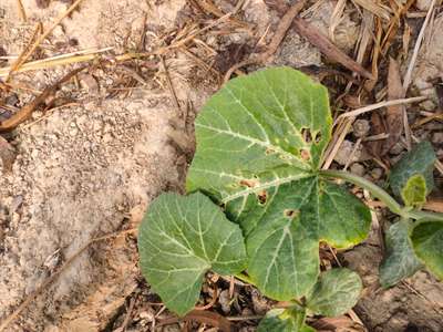 The leaves of my pumpkin plant are quite damaged.Its a baby plant with only ten-twelve leaves but the leaves are damaged.Please help me out.