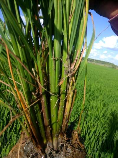 Panicle has become white with chaffy panicle. Unfilled grains