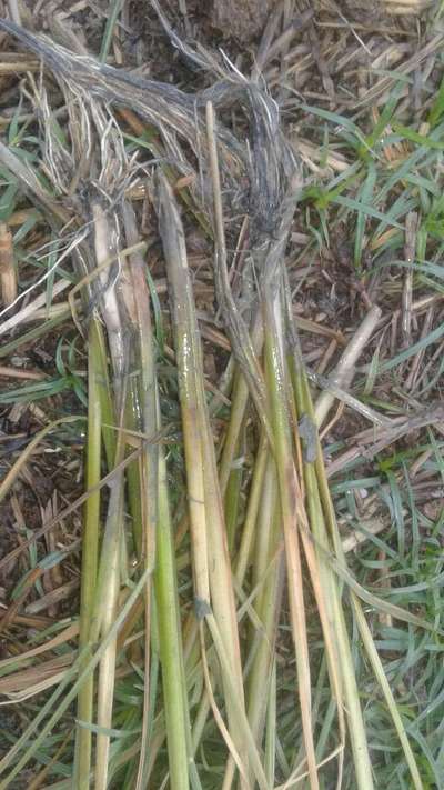 Ramesh Bhardwaj Seems like that your plants might be infested with Stem Rot of Rice. So, you can review at platix library by clicking on the green hyperlink for comparison and control measures.