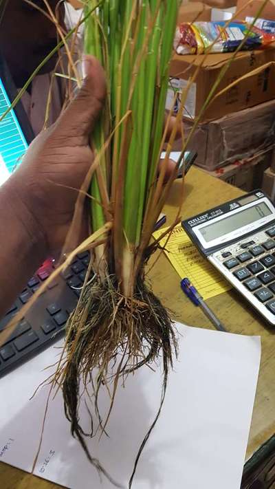 Rice field is affected by yellowing of leaves. Roots aree good. No insect attack. Seems bacterial blight.?? Plz suggest