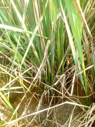 Hi Mrinal Kanti Ghosh . Image is not clear, though on zooming, I suspect - its Rice Sheath Blight but not sure. Lets check symptoms by clicking on green link for taking control measures from Plantix library. Also use fertilizer calculater, crop Advisory, see all tasks and weather report sections available here on home page of Plantix to increase your crop productivity.