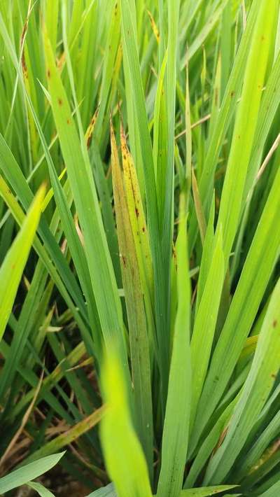 Dear Sanjay Giri It is brown leaf spot. Spray carbandazim 2 gms in one litre of water. About 200 litres of spray solution may be required per acre. Good luck
