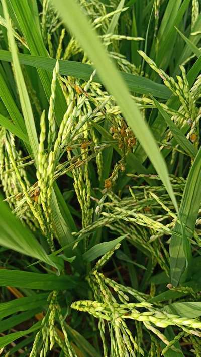 False smut Once it came to field, it is not curable.. Our effort is to control spreading, . Mancozeb 2 g/L spray In next season, after emergence of panicle, spray Mancozeb two times at 7 days interval, it will avoide occurance of disease
