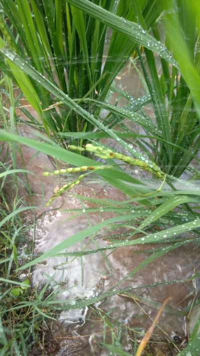 Hi Ghautham Gj. I think it's starting stage of Bacterial Panicle Blight . Click on green link for checking symptoms and taking control measures from Plantix library.