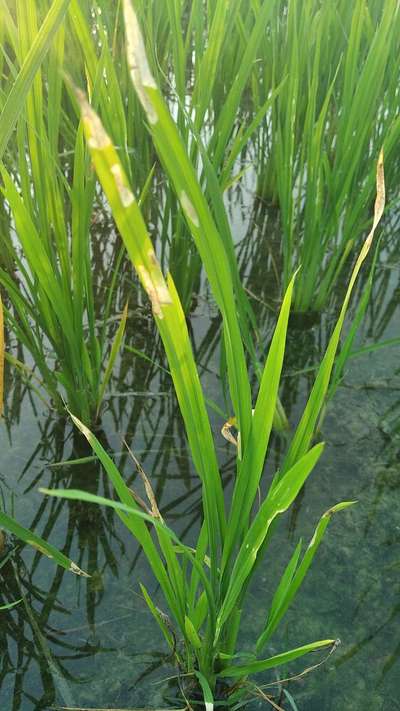 Mosca Minadora do Arroz If you click on the green hyperlink that takes you to Plantix Library where everyone can find details on this problem and control measures. 😊😊😉