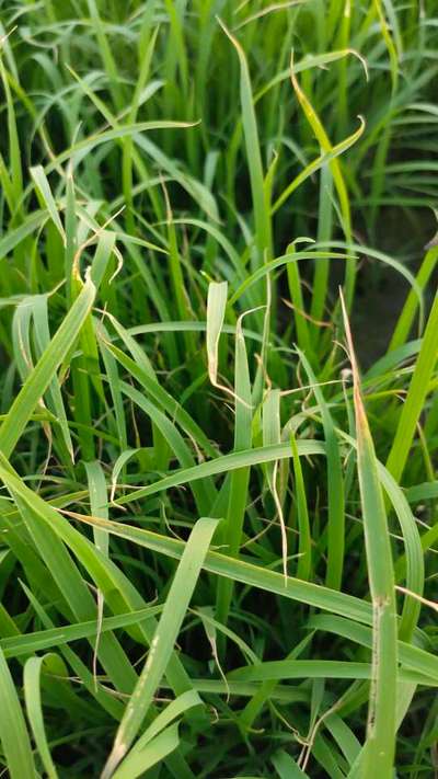 Hi Harjeet Singh. This tip burning is due to 2 regions: 1. Due to Potassium Deficiency and 2. Bacterial Blight of Rice. Lets click on both green links for checking symptoms and taking control measures from Plantix library.