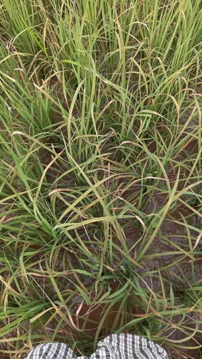 Hi Pathak. As per your sent image, your Rice crop is severely effected by Bacterial Blight of Rice and Bacterial Leaf Streak . Lets check symptoms by clicking on green links for taking control measures from Plantix library. Apply chemicals shown in green links at least 2 times in 11 days interval. Let's check details in green links given above. Better to change chemicals each time for spray.