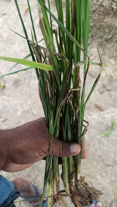 Hi Hasan. Better to send clear and closer day time full plant direct field pictures with your proper query again please. Any way once check symptoms with Stem Rot of Rice by clicking on green link for taking control measures from Plantix library.