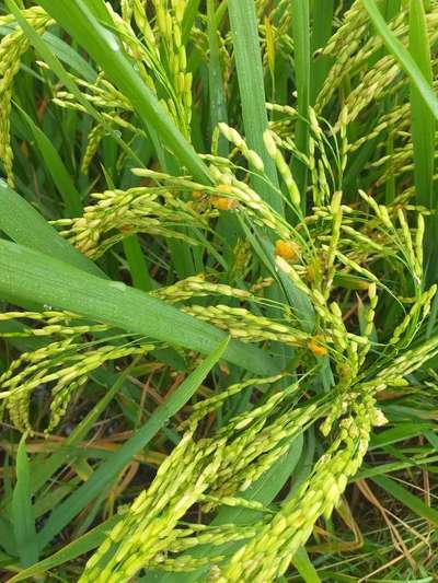 Hi Kalyan. It looks like False Smut . Click on green link for checking symptoms and taking control measures from Plantix library.