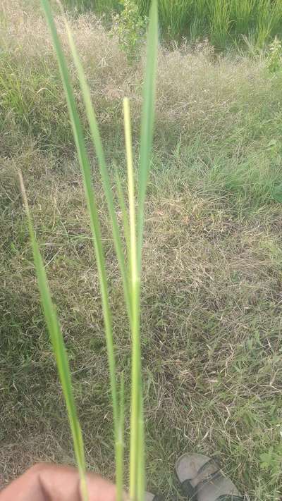 Hi Kasula Srikanth . I am not sure, but I this might be Violet Stem Borer or Asiatic Rice Borer or Yellow Stem Borer effect on crop. Lets click on green links for checking symptoms carefully for comparison to take control measures immediately.