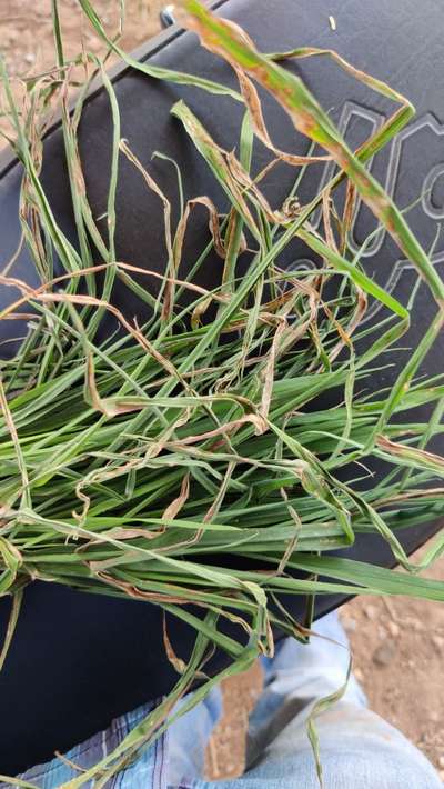 I find alot this kind of white strips on flag leaves in my 1121 rice crop ?