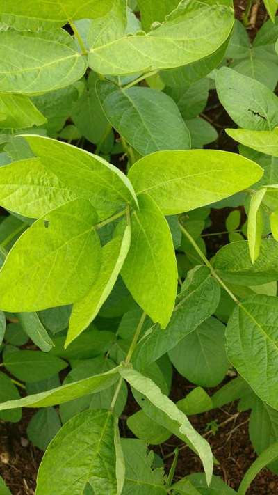 It may be due to prolonged cloudy weather, plants will recover automatically when in nodulation stage