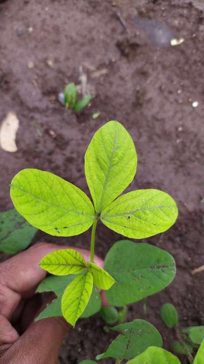 such type of yellowing and brown spots on soyabean.pls provide remedy.