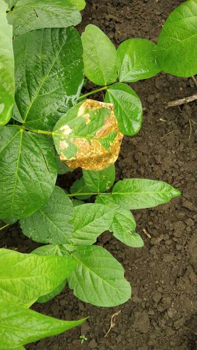 Soyaben scrop is 25 days old and now last week there was rain afterwards plants become yellow and holes on leaves. Kindly suggest the solution on the same.