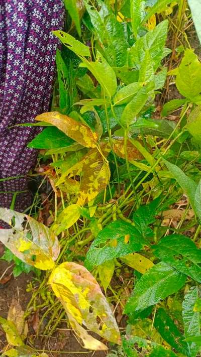 Holed leaves of soyabean with yellow spot